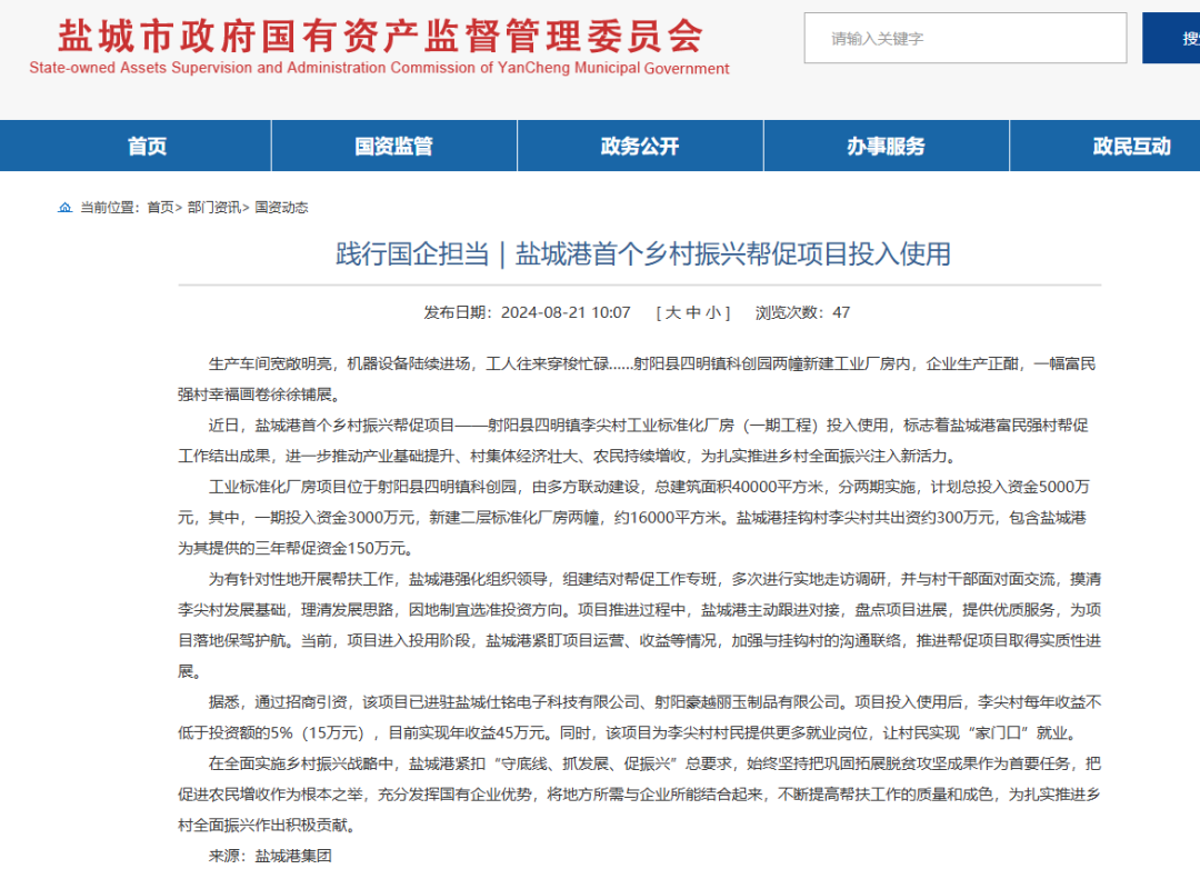 盐城港充分发挥国有企业优势