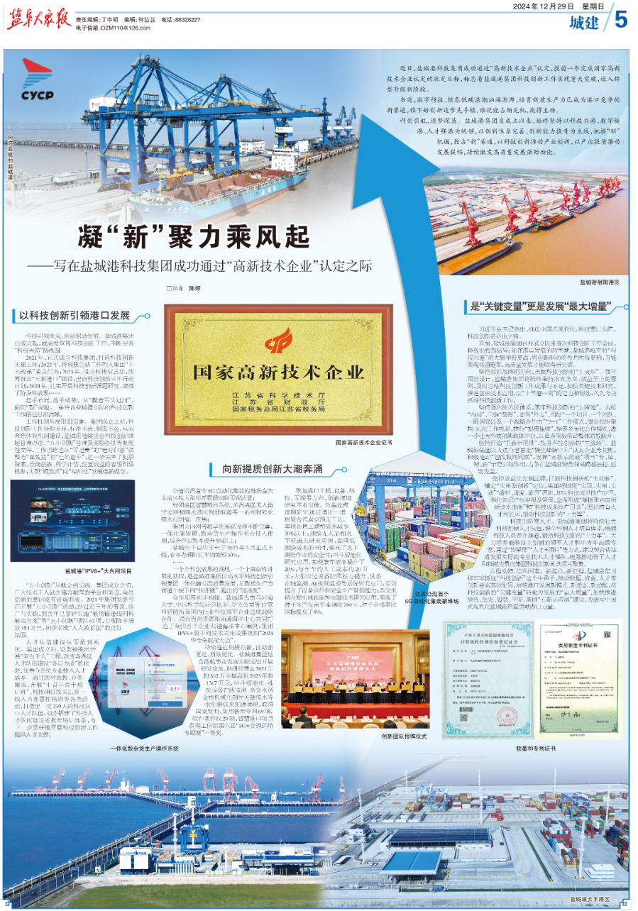 起手布局,落子成势。从“摸着石头过河”,到向“新”奔跑,一条符合盐城港实际的科技创新工作路径日渐清晰。