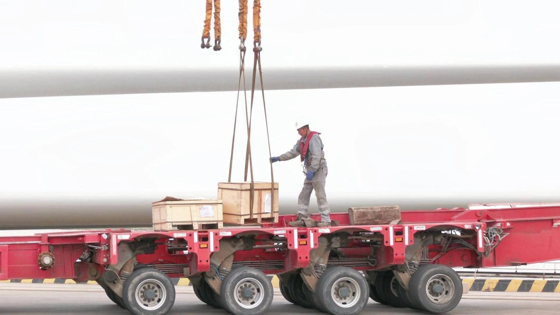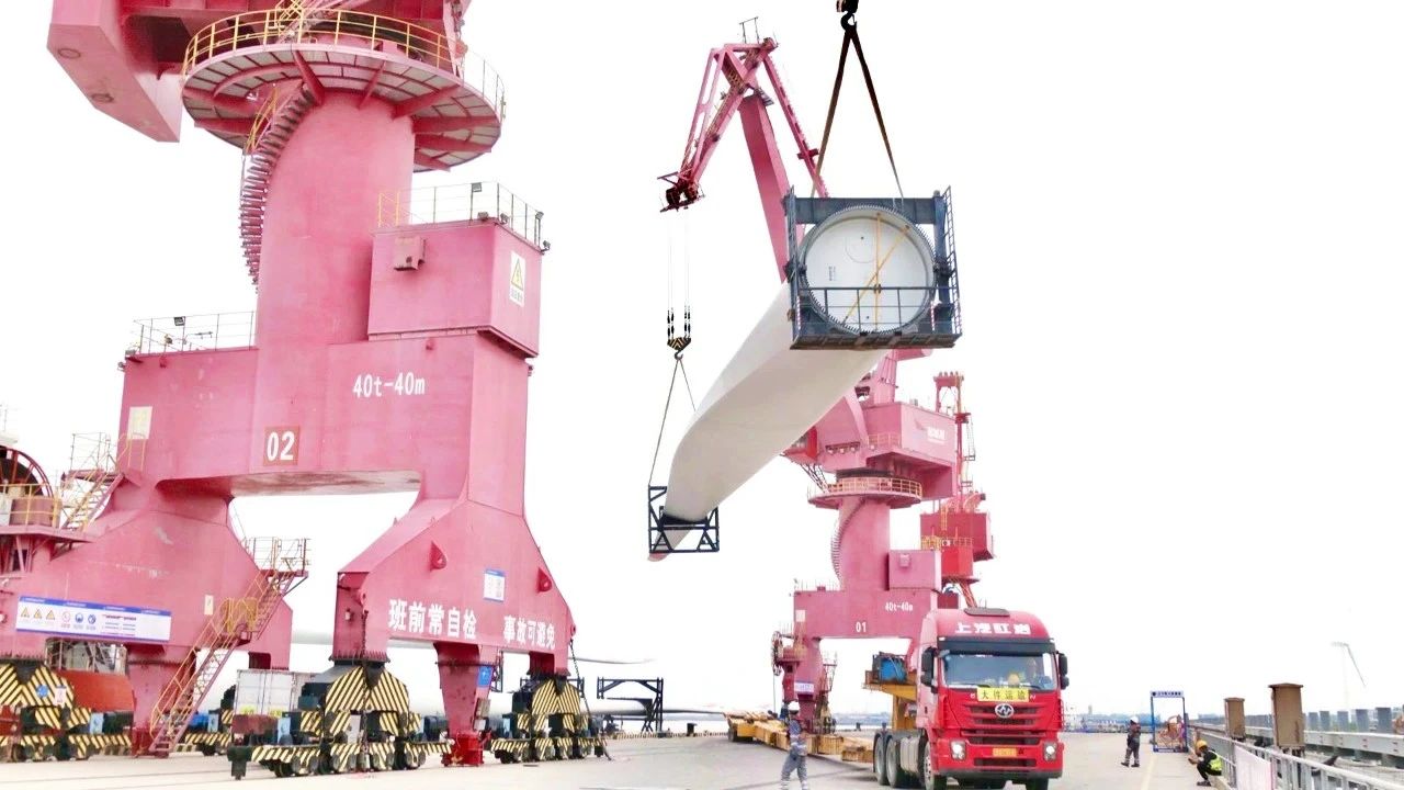 “这批风电叶片发往上海金山,共计36套,单套长度达110米,目前已完成18套的装载作业,这是第9船次。我们班组正全力协作,力争在6小时内完成本船次的装运任务,确保按时离港。”江苏盐城港风电装备进出口港有限公司生产组二班班长祁正磊介绍道。