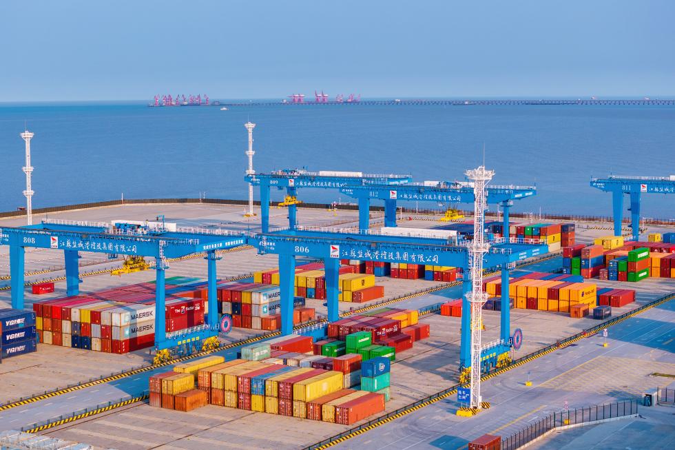 北上联结环渤海、京津冀,南下衔接粤港澳、东南亚,东进融入日韩及东北亚经济圈,西拓畅通中西部及中亚地区……65条国际国内航线,架起了盐城港通江达海、货畅其流的新通道,在与世界的双向奔赴中链接全球。