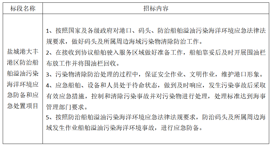 1、项目名称:盐城港大丰港区防治船舶溢油污染海洋环境应急防备和应急处置项目
