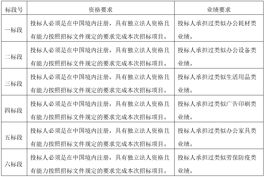 5.1 符合资质要求的投标人可以参与上述六个标段的投标。
