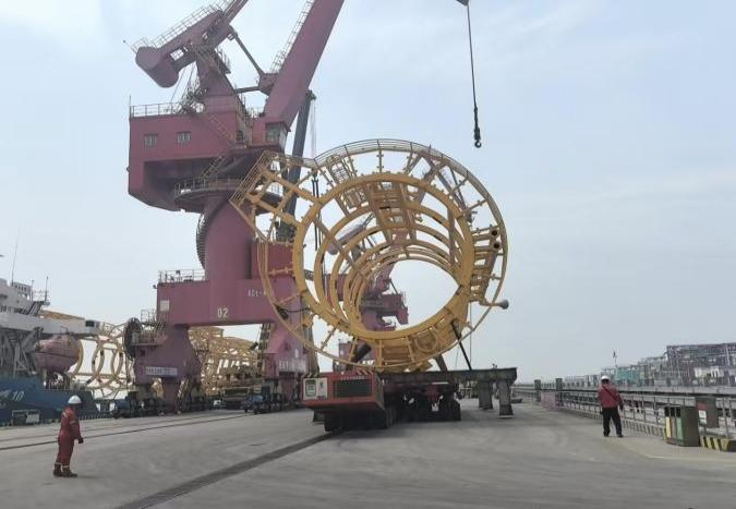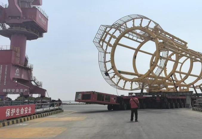 新品类!射阳港区完成首批“风电套笼”装卸作业