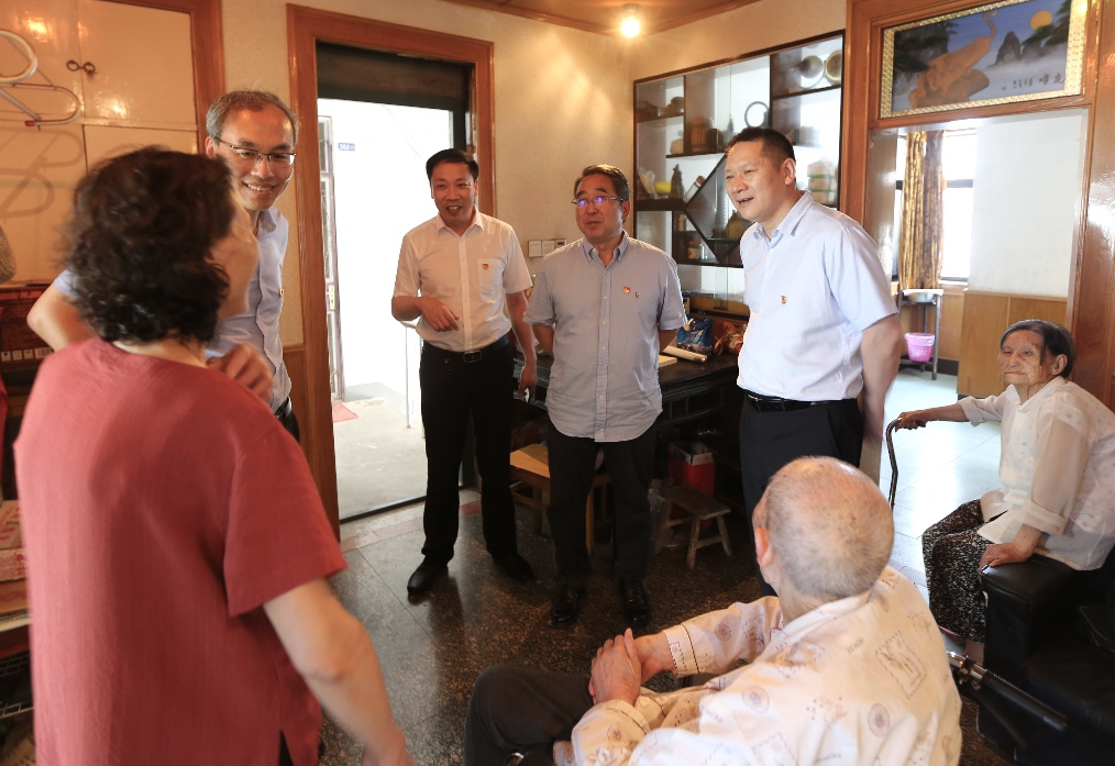 在建国前入党老党员奚正银老人家中,陈正华看到97岁的老人身体硬朗、精神矍铄,感到十分高兴。他握着老人的手认真询问老人的生活及儿女就业工作情况,并为老人戴上“光荣在党50年”纪念章,送上慰问金,感谢他长期以来为党和国家作出的积极贡献,并嘱咐他保重身体。同时,陈正华还要求随行青年党员积极向老同志学习,定期上门开展志愿服务活动,陪伴老党员、倾听他们曾经的故事,在向革命前辈学习革命精神的同时,将党最新的方针政策、会议精神及时传达给老党员。
