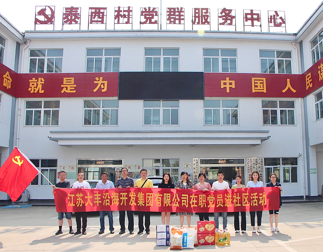 近日,大丰港区沿海集团党总支组织各子公司在职党员开展走进社区活动,对泰西村的老党员、困难群众开展走访慰问,为他们送去党的关怀和温暖。