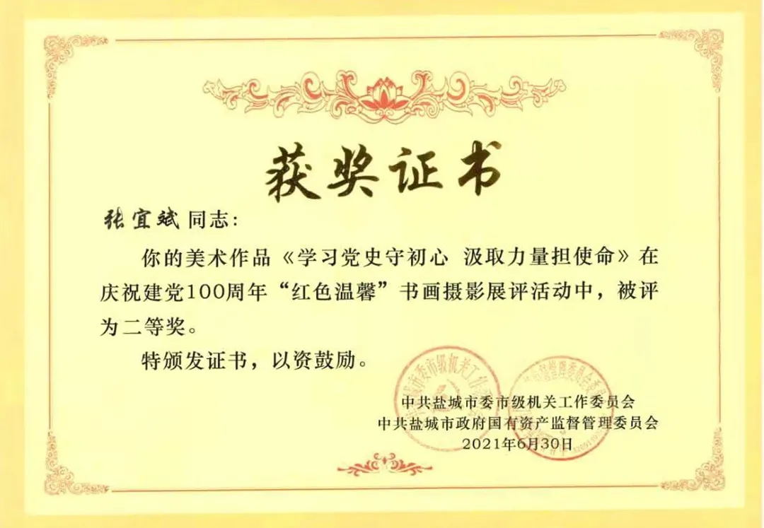 近日,中共盐城市委市级机关工作委员会与中共盐城市政府国有资产监督管理委员会委员会发布《关于市级机关庆祝建党一百周年“红色温馨”书画摄影展评活动的表扬通报》,海角社区 工会联合会荣获“优秀组织奖”,响水港区张宜斌同志获得“美术作品类 二等奖”。