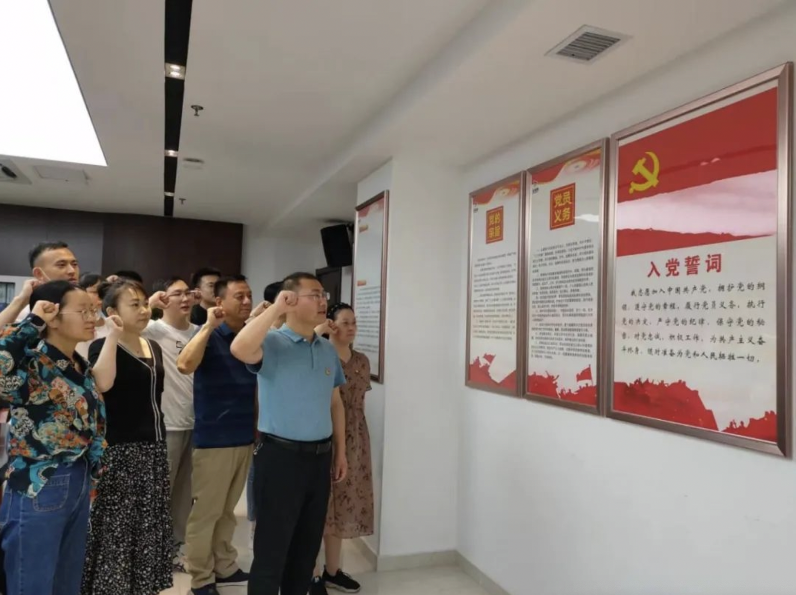 培训开始,首先在领誓人的带领下,全体党员面对鲜红的党旗,在入党誓词中重温入党初心。