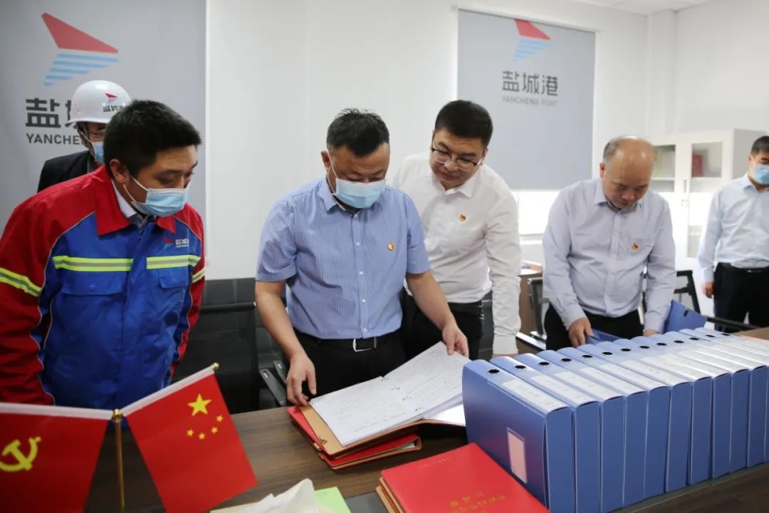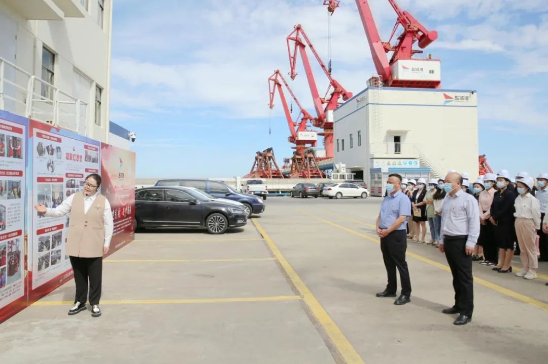 与会人员集中观摩了大丰港区集装箱堆场项目现场并听取相关汇报,随后集中前往粮食码头分公司,现场观摩党建、群团开展工作亮点,查看党组织标准化台账资料、党群活动中心规范化建设和党建工作宣传氛围等情况。