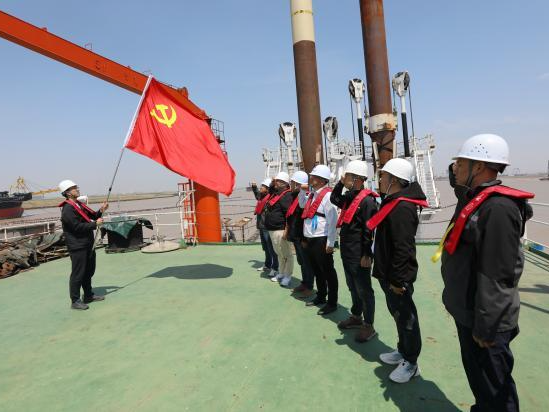 (一)党建工作进一线,锻造攻坚克难的“红色引擎”。 设立“党员责任区”“党员突击队”“党员示范岗”等载体,将党旗插在工地上。在灌河口五万吨级航道整治工程、大丰港区三期通用码头3#泊位及内档泊位工程等重大工程现场,第一时间成立党建共建组,确保项目延伸到哪里,党组织就覆盖到哪里。围绕地质条件复杂、施工窗口期短、技术攻关瓶颈等“硬骨头”,设置攻坚课题。灌河口五万吨级航道整治工程项目攻坚战役中,党员突击队连续奋战90天,顺利完成五万吨航道交工验收、通航验收。生动诠释了“关键岗位有党员、困难面前有党员、突击攻关有党员”。