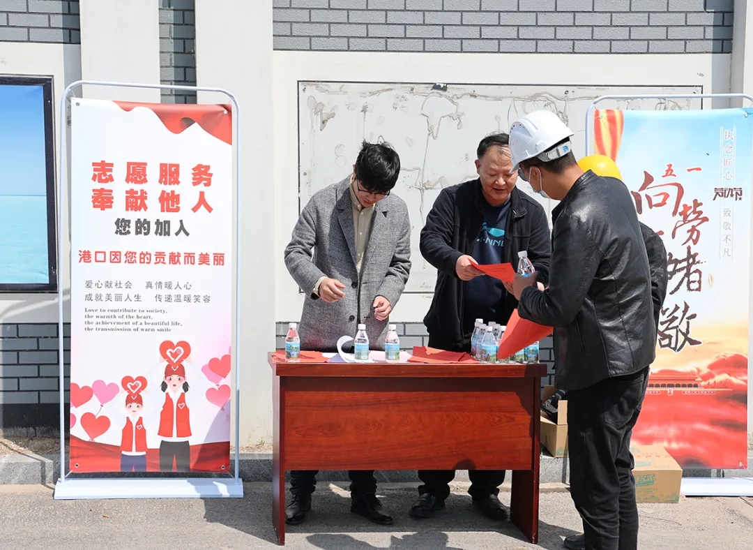 为大力弘扬五四精神,5月1日上午,滨海港区开展“港口因您的贡献而美丽”主题活动,组织青年志愿者服务队慰问节日期间坚守在生产岗位的一线员工,向劳动者致敬。