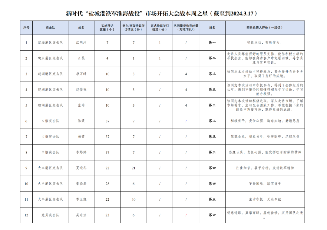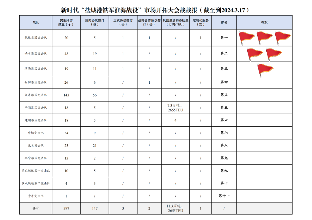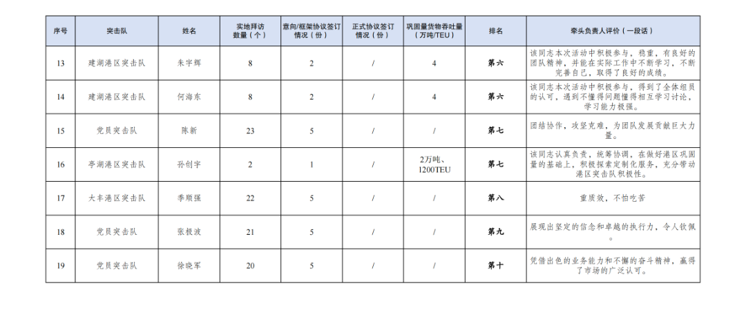 3.签订正式协议数量3份:其中航运集团突击队1份,响水港区突击队1份,滨海港区突击队1份。
