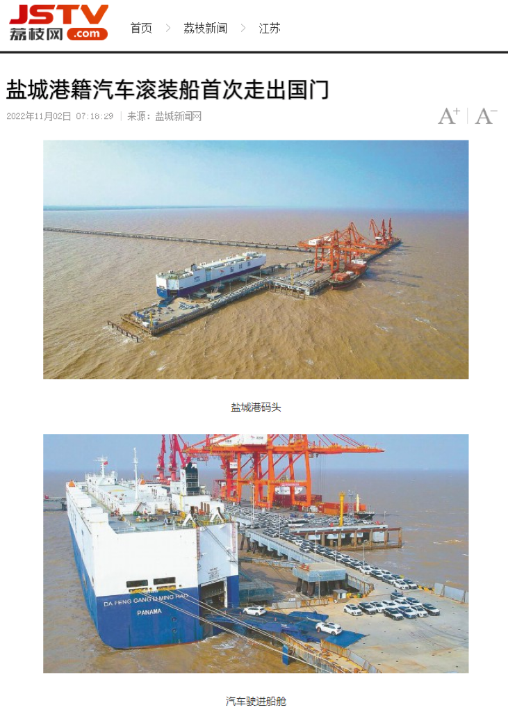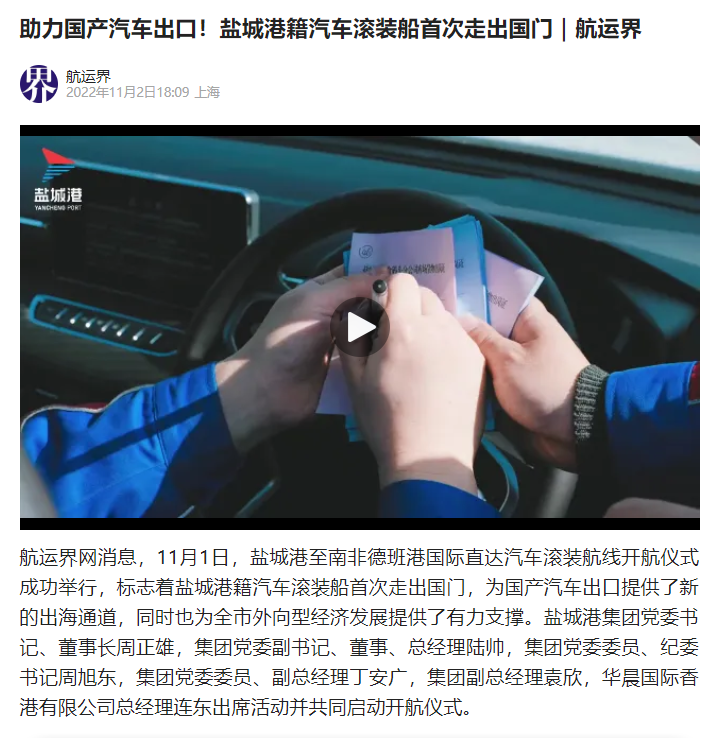 盐城港至南非德班港国际直达汽车滚装航线开航