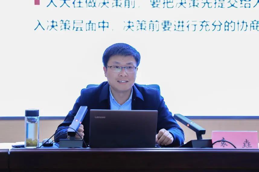 会上,袁垚围绕习近平总书记在全国两会上的重要讲话精神、全国两会基本情况、2023年政府工作报告要点、2023年两会热点重点内容等方面内容,并结合盐城港的发展和工作实际,对全国两会精神进行了深度解读。