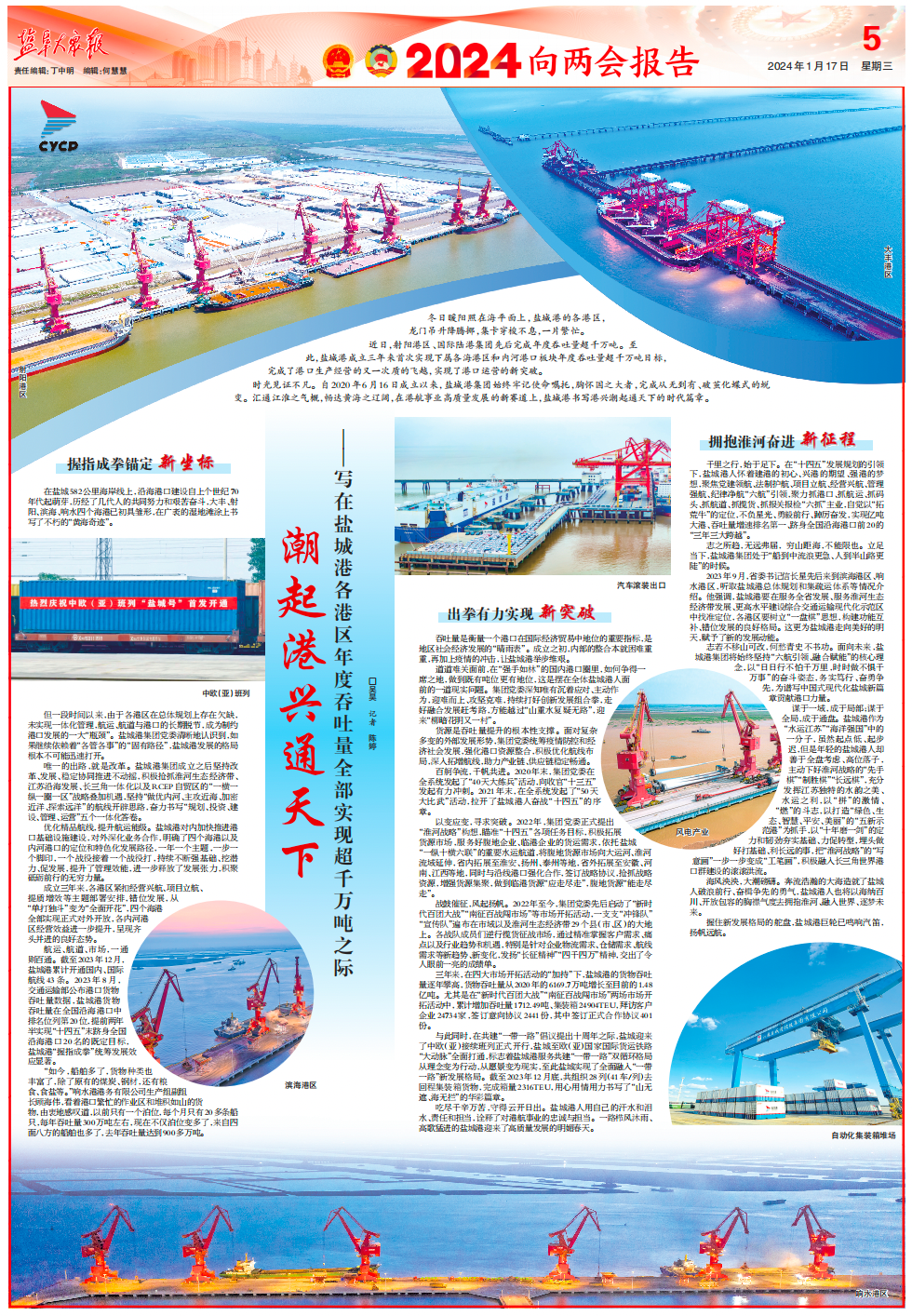 2023年9月,省委书记信长星先后来到滨海港区、响水港区,听取盐城港总体规划和集疏运体系等情况介绍。他强调,盐城港要在服务全省发展、服务淮河生态经济带发展、更高水平建设综合交通运输现代化示范区中找准定位,各港区要树立“一盘棋”思想,构建功能互补、错位发展的良好格局。这更为盐城港走向美好的明天,赋予了新的发展动能。