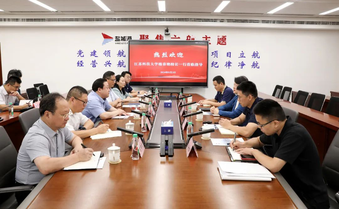 周正雄对嵇春艳一行的到来表示欢迎,对江苏科技大学在盐城港发展过程中给予的关心和支持表示感谢,并介绍了盐城港相关情况。他说,由于地理环境的特殊性,盐城港长年面临着复杂的水文地质条件,一定程度上限制了港口生产能级的提升。面对宏观形势、吞吐能级、新质生产力等“发展拐点”,集团积极组织开展航道清淤、软基处理、泥沙利用、极端天气应对等课题研究,希望通过“揭榜挂帅”的形式,积极联合高校及单位共同研究解决路径,着力破除制约港口高质量发展的不利因素,进而有效降低运营维护成本,实现效益提升。希望江苏科技大学一如既往地关心支持集团的发展,坚持“实用性”原则,共同推动课题研究与成果转化,持续深化合作交流,携手打造“港口科研项目升级版”,推动海洋经济高质量发展。