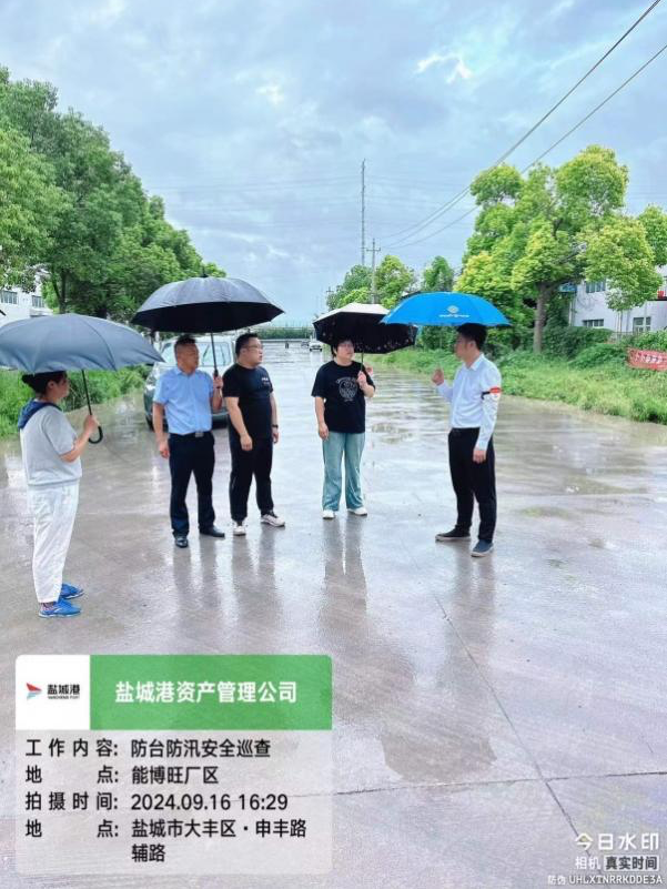 广宣传 强提醒。公司安全环保部密切关注台风动向,加强预警预报,第一时间通过工作群转发《盐城市气象灾害应核对工作提示单》及各类预警信息,通过层层宣传,扩大台风预警范围,一方面提示小区居民做好户外物品收回、非必要不出门等安全防范工作;另一方面提高承租户应对防御台风的重视程度。