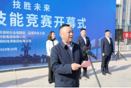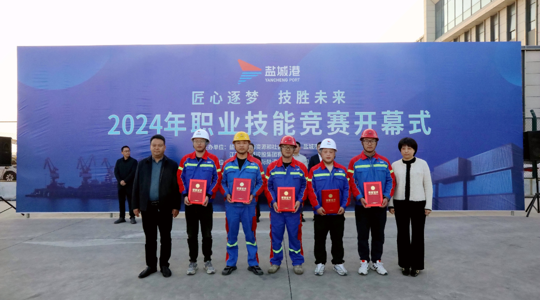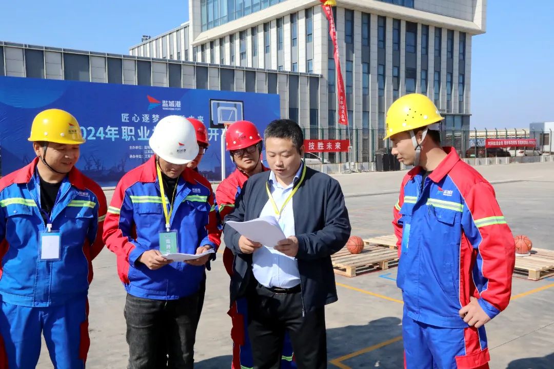 10月29日,由盐城市人社局、市总工会和海角社区 联合举办的2024年职业技能竞赛在盐城港大丰港区成功举行。市人社局四级调研员刘江、市总工会副主席周彩枫到场指导,集团党委副书记、纪委书记周旭东出席活动并致开幕辞。