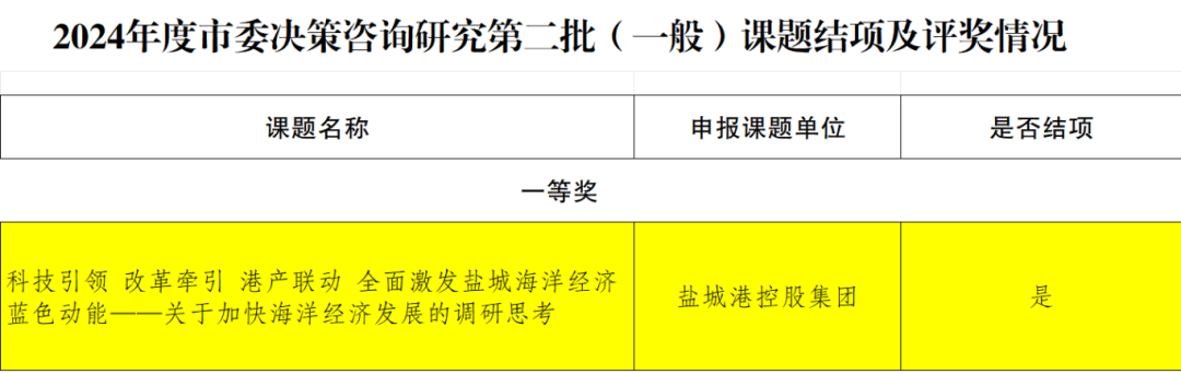 课题《科技引领 改革牵引 港产联动 全面激发盐城海洋经济蓝色动能——关于加快海洋经济发展的调研思考》,紧扣海洋强国战略思想,系统分析了全国沿海主要港口近年来改革发展的实践案例,结合我市全面推进海洋经济高质量发展的现实要求,从体制机制改革、集疏运体系建设、港产城融合发展等方面,为盐城港航事业高质量可持续发展建言献策。