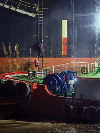 近日,为给凌晨到港的利比里亚籍“环球贤者”轮腾出宝贵靠泊窗口,引航站深夜奔赴港口一线,登上马耳他籍“米拉”轮,开启了一场与时间赛跑的夜间作业。