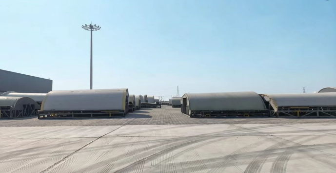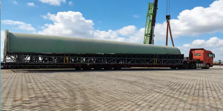 据悉,此次堆存的36件“阳模”新货种均系风电叶片模具的“家庭成员”,作为国家一类开放口岸,滨海港区物流公司创新推出“物流+转运+堆存”一体化服务模式。针对“阳模”体积大、精度要求高等特性,公司专门制定专项作业方案,划定2600平方米专属堆存空间;为便于吊装与转运,提前对3组84米超长“阳模”进行科学截断处理。最终,36件总重量达228吨的“阳模”货种,仅用2天时间便顺利转运至海河联运指定区域完成堆存、保管,拓宽了港区新货种作业品类。