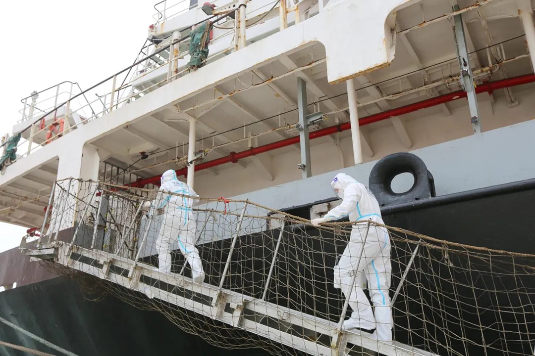 接到任务后,滨海港区第一时间制定了“普拉通”轮专项应急方案,布置船岸隔离、进出管控、通风消毒、个人防护、终末消杀、应急处置等工作,明确各环节责任主体。疫情船靠泊期间,港区停止一切货物装卸作业,通知候泊船舶转港装卸,清空码头面及堆场的人和物,对重点人员、重点部位启动高风险防控工作标准。对货轮靠泊区域进行全面封闭管理,除引航员、登临检疫人员等必需人员外,一律不得登船。同时,协助海关、海事、边检、滨海县卫健委及船代等部门、单位形成联合管理机制,内外联动、共同加强对疫情船舶的监督管理工作,做好港口人员排查、隔离,严把疫情防控第一关,确保港区口岸安全,真正做到疫情防控和生产经营“两手抓、两不误”。