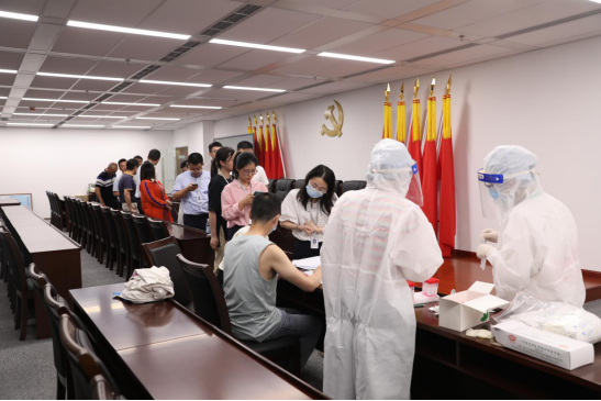 为进一步强化,织密织牢集团联防联控防疫网络,切实保障全体员工的健康安全。在100%实现新冠疫苗“应种尽种”前提下,集团积极与市疾控中心协调沟通,7月21日上午,邀请德赛堡医院核酸检测医护团队来集团为全体职工进行核酸检测工作。集团上下统筹推进疫情防控和生产经营,提前安排部署,根据“到点、到时、到人”的要求,广大干部职工积极配合,核算检测现场秩序井然有序。