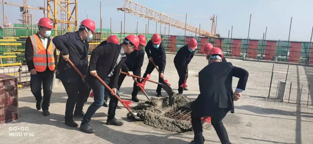 为鼓舞士气,提振斗志,响水港区组织在项目现场举办“第一批项目主体封顶大吉”活动,海角社区 、响水县陈家港镇及项目建设五方责任主体的相关领导参加此次活动。