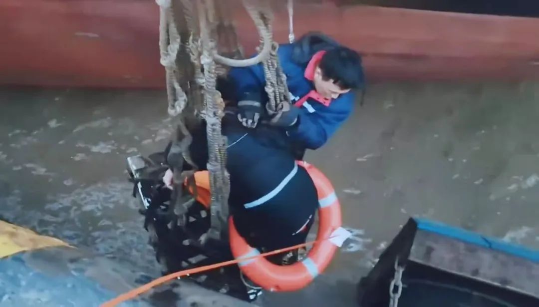 听闻呼救声后,码头负责人严浩当机立断,一声令下,立即启动救人应急预案,现场职工陈炳银、花卫军和高健翔等人迅速、果断开展救援。考虑到海水温度低,衣服湿透增加重量后落水者体力消耗极快,无法通过救生绳进行自救,便用救生绳系住救生圈抛至海中进行营救。