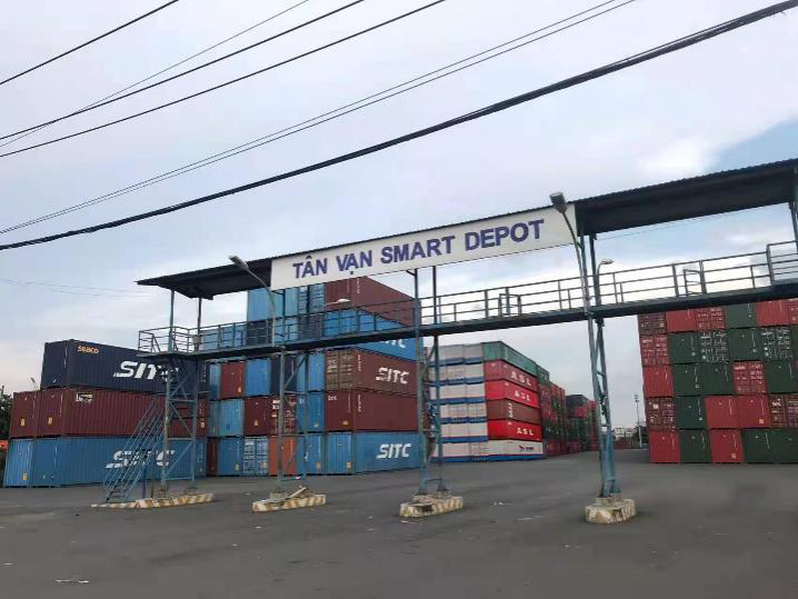 在越南胡志明市TAN VAN SMART堆场,盐城港自备箱整齐摆放,一展风采。