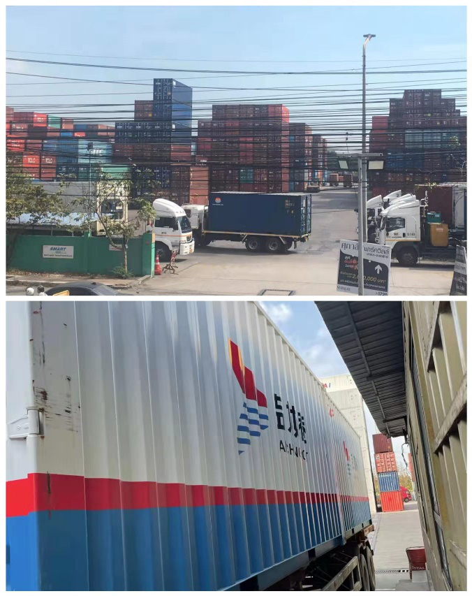 船舶停靠在湄南河畔BMT码头,一辆辆装卸货车驶向堆场,来往车辆络绎不绝,穿梭在港区与智慧物流园区中,一眼就能看见盐城港自备箱靓丽的“身影”。