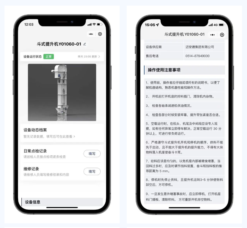 巡检及维保人员只需通过微信扫描设备上的二维码,即可对照小程序检查条目逐条确认并记录工作内容,快速记录设备状态、检修设备,也可以根据小程序中显示的设备常见故障以及排除方法,第一时间判断设备问题并及时通知机务进行修复,及时消除存在隐患。