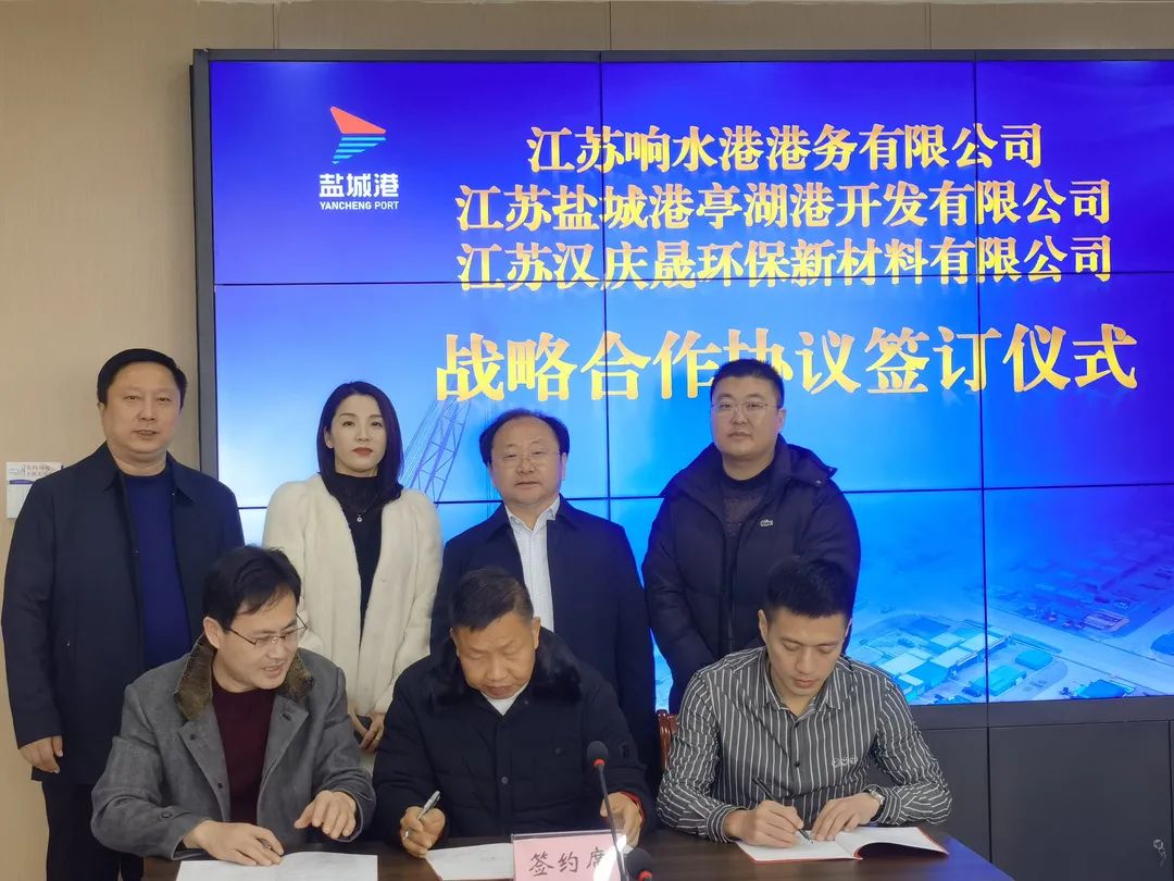 1月26日上午,江苏响水港港务有限公司、江苏盐城港亭湖港开发有限公司、江苏汉庆晟环保新材料有限公司顺利签署了战略合作框架协议。三方在对建材物流通道建设、集散基地建设及其价值达成共识的基础上,坚持“平等互利、资源共享、优势互补”平等互利、资源共享、优势互补建的原则,就涉及的供应链服务、港航协同、船货匹配、信息互联互通和运输组织优化等建立战略合作关系。