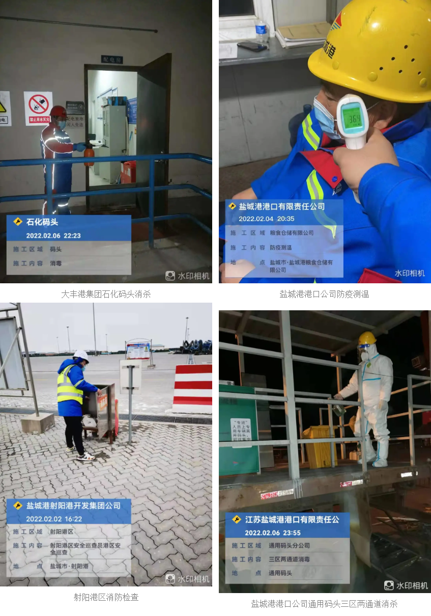 1.安全生产、疫情防控工作常态化持续开展。盐城港港口公司:春节期间安全、疫情防控日常巡查,班前会防疫交底,防疫消毒;滨海港区:春节期间安全、疫情防控日常巡查,班前会,码头设备作业前安全检查;大丰港集团:春节期间安全、疫情防控日常巡查,防疫消杀;集装箱集团:春节期间安全、疫情防控日常巡查,码头设备作业前安全检查,抓好了日常消杀工作;实业集团:春节期间安全、疫情防控日常巡查;陆港集团:春节期间安全、疫情防控日常巡查,作业现场巡查,日常消杀;射阳港区:春节期间安全、疫情防控日常巡查,安全、疫情防控日常巡查,设备安全检查,夜间安全巡查;响水港区:春节期间安全、疫情防控日常巡查,对作业区、办公区防疫消杀;盐城港保税物流公司:春节期间安全、疫情防控日常巡查,组织作业区安全巡查,日常消杀工作;盐城港项目公司:春节期间安全、疫情防控日常巡查,组织春节复工慰问活动。