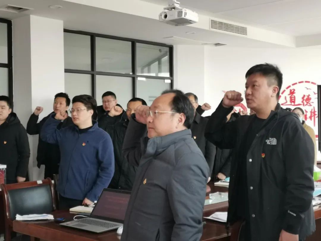 “我志愿加入中国共产党,拥护党的纲领,遵守党的章程……”,响水港区党总支书记带领全体党员面对党旗,重温入党誓词,进一步坚定理想信念。铿锵有力的宣誓声响彻室内,现场所有人都深受感染,仿佛回到了那个风雨如磐的年代。