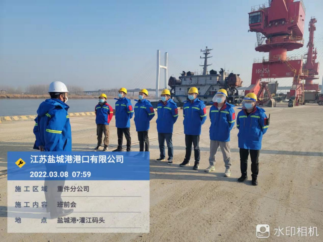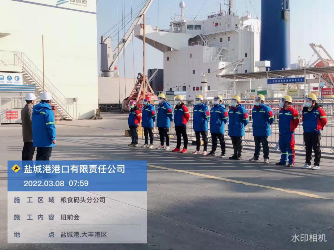 港口公司通用码头分公司充分发挥码头专业优势,不断优化人员结构,定人适岗,改进工作流程、提高工作效率并做好疫情防控和安全事项。从每天的早晨会做起,杜绝流于形式的班前会,做到五个一:“每日一点名”、“每日一问”、“每日一总结”、“每日一次传达上级精神”、“每日一次安全防疫宣讲”,真正为码头安全管理工作奠定基础,为盐城港高质量发展注入不竭动力。