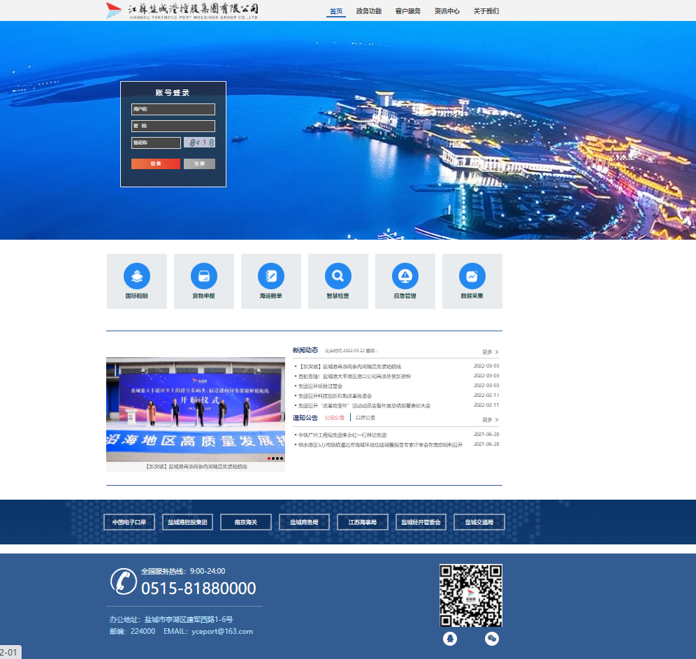 盐城电子口岸是集电子政务、电子商务、电子物流三位一体,跨部门、跨行业、跨地区的口岸公共信息共享平台,平台涵盖码头样品管理、口岸物流协同作业、港口信息化作业、港区结算管理、港航EDI中心等功能。