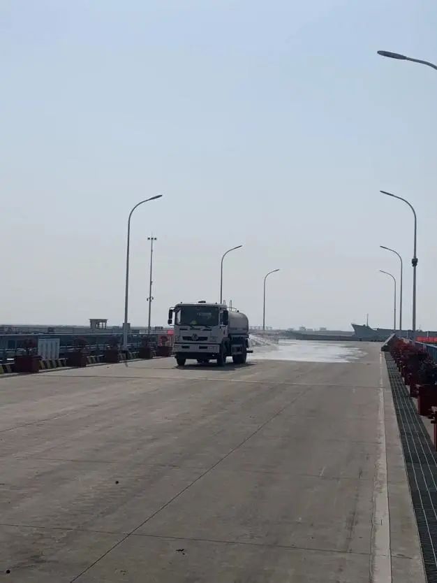 疫情形势依然严峻,响水港区在抓好疫情防控的同时不放松绿色生态港口建设。为提高喷淋系统的喷射覆盖区域,公司对喷淋设施的喷枪头进行改造,由原来的水柱喷射改为扇形喷射,改造完成之后将大幅度提高喷淋面积。此外,港区防风网正在建设当中,待防风网建成投入使用后,将进一步提高响水港区场地粉尘治理水平。