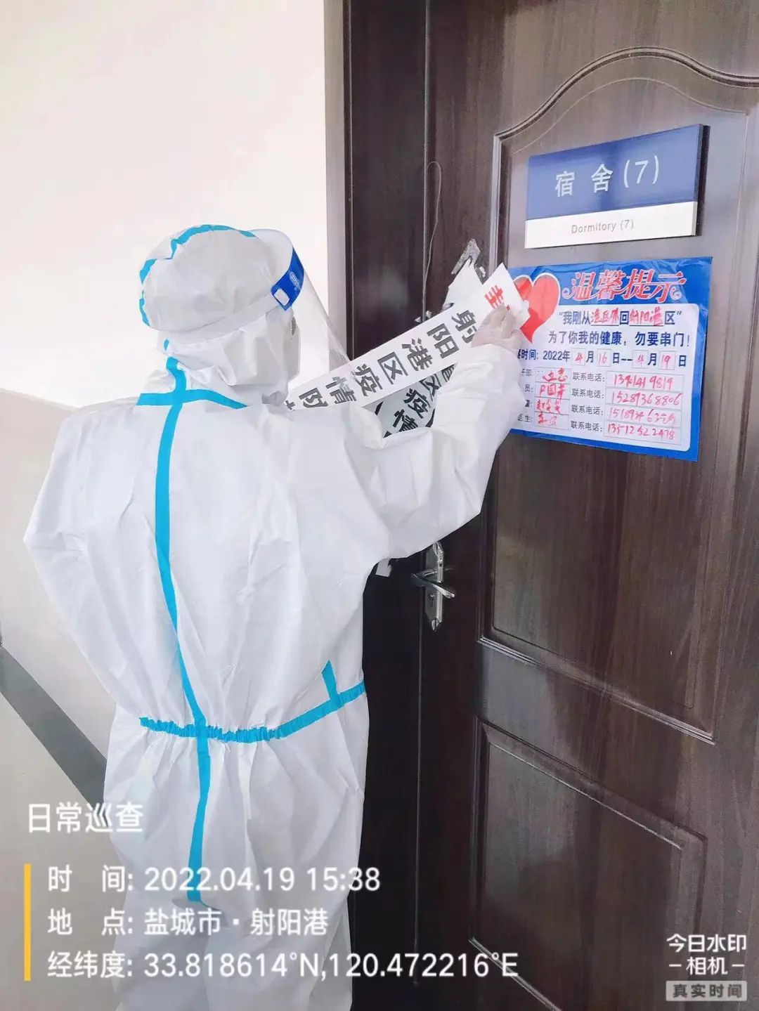 4月15日,射阳县出现新冠肺炎阳性确诊病例,根据海角社区 和地方政府防疫要求,射阳港区立即启动疫情防控应急预案,实行临时应急封闭管理,全面贯彻“外防输入、内防反弹”为总策略,以“动态清零”为总目标,严格认真落实各项防疫措施,做到“人、物、环境”同防,筑起抗击疫情的坚实防线。