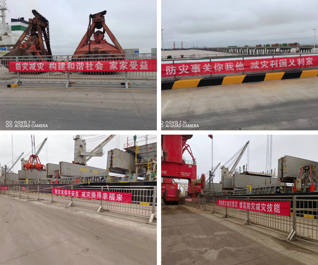 为做好全国第14个防灾减灾日活动,进一步增强公司全体员工防灾减灾意识和应急处置能力,锻造一支听之能用、用之能战、战之必胜的防灾减灾应急队伍,保障公司安全生产形势持续稳定向好,盐城港港口公司严格执行集团统一部署,结合自身情况,以“强化软件硬件,做好防灾减灾”为主线,在公司范围内开展防灾减灾主题活动。