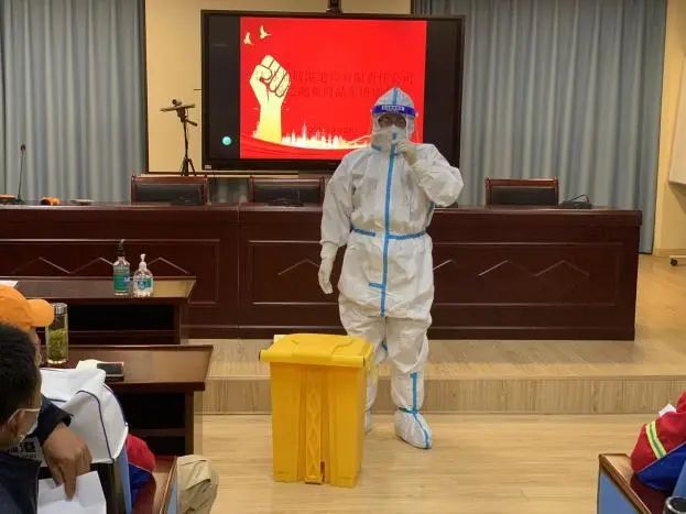 作业前,他们认真学习疫情防控知识,牢牢掌握防护用品的穿脱流程,扛起疫情防控责任。