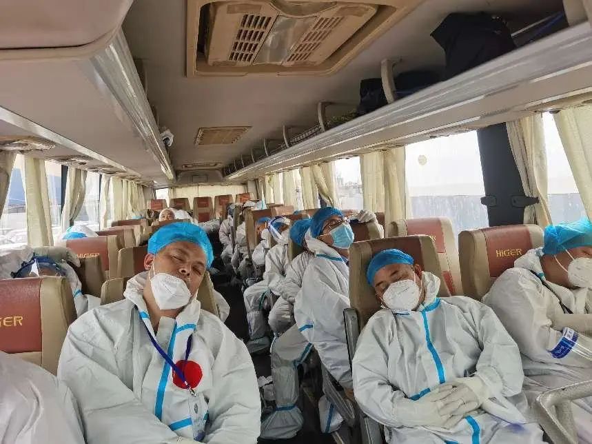 面对30小时连续作业,他们倾力付出,勇于奉献。困了累了只能在临时休息点(中巴车)稍作休息。