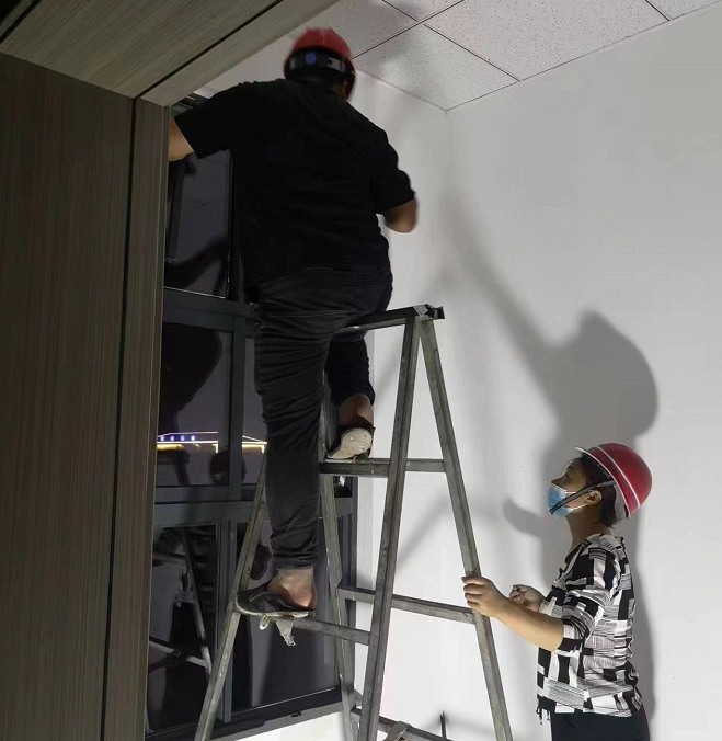 在施工期间,陆港集团工程建设公司多次召开协调会议推进工程进度,明确工期时限,细化责任分工,将每个施工工序精确到日,并选派精干力量现场监督指导。施工过程中,现场施工人员克服众多不利因素。尤其是今年项目开工后,疫情形势严峻,造成工人到岗困难、物流不畅、外购件滞后等困难,我公司项目人员持续跟进外购件的采购到货进度,并根据实际情况调整施工项目整体部署,优化施工方案。特别是在4月上旬的疫情静态管控期间,该工程更是由于疫情停工9天,复工后施工人员争分夺秒、不舍昼夜的抢工期、赶进度。5月初项目部进入“白+黑”施工模式,白天建筑外墙粉刷,晚上室内照明线路布线调试,三个安全员轮班监控,确保现场施工安全。最终不仅高质量的提前完工通过竣工验收,更主动帮水上服务区优化图纸上未标明的水电线路管道走向,受到业主单位的一致好评。