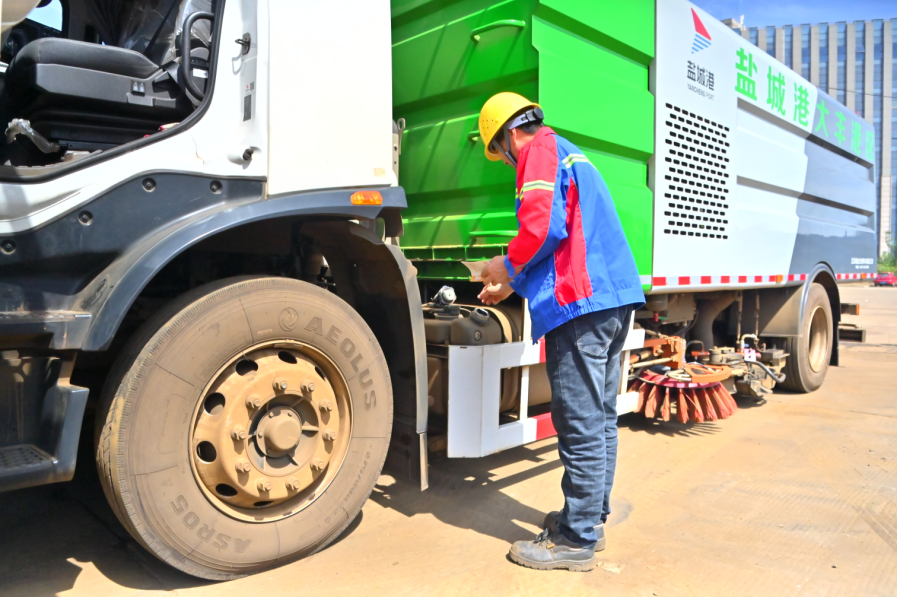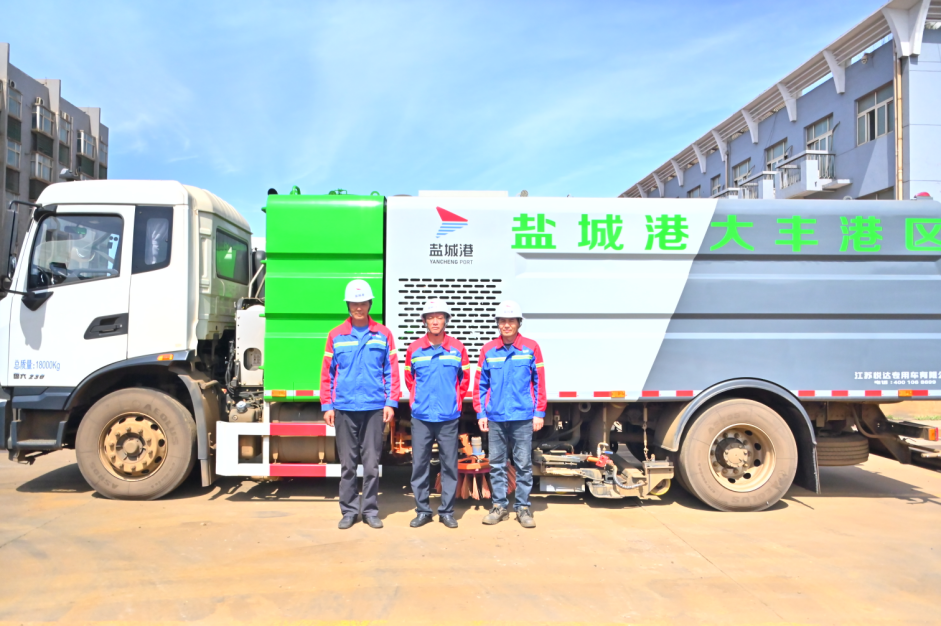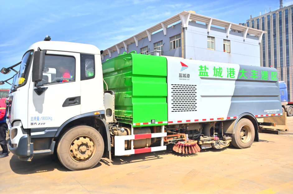 Hi!大家好。我是来自盐城港港口公司的一台环保洗扫车,别看我和普通环保车的外观差不多,我的工作任务可和它们不一样,我每天要对盐城港大丰港区道路进行洗扫作业和防尘抑尘。我是清洁工作中的好帮手,每天都让港区恢复焕然一新。