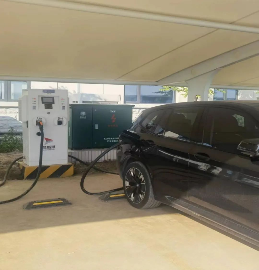 7月4日,亭湖港区的电动汽车充电站完成调试,正式投入使用。