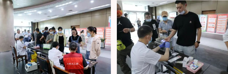 献血现场,广大干部职工自觉排好队伍,依次填写表格、测量血压、抽血化验,进行血液初筛,做好献血前的准备工作,经过严格的检验合格后上车采血,整个过程在医护工作者的指导下井然有序。