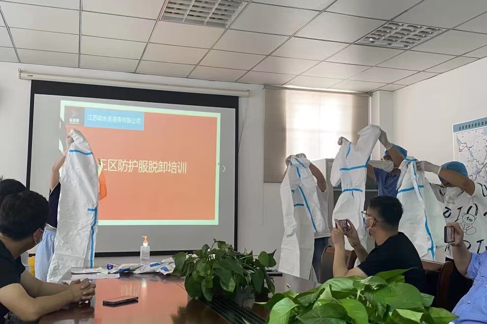 为坚决打好新型冠状病毒疫情防控阻击战,全面提高应对疫情的响应能力,熟悉应急处置具体流程,从严抓好疫情防控工作,近日,响水港区港务公司特邀响水县港城医院专职医护人员,对港区作业人员进行疫情防控相关的三区防护服穿脱消杀培训。
