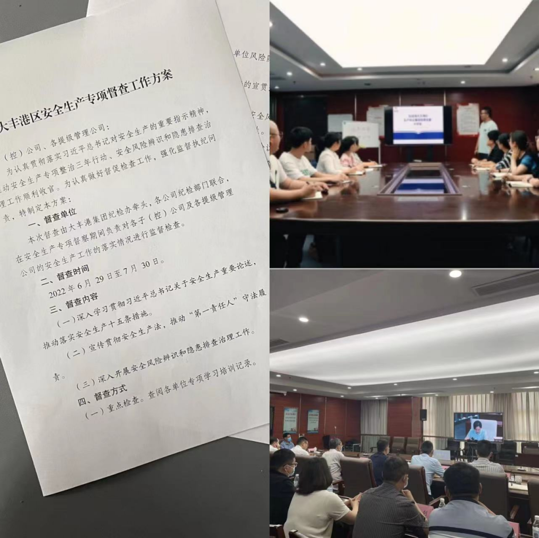 大丰港区始终牢记“生命高于一切”,时刻绷紧安全生产“思想”,始终牢记“防范胜于救灾”,全力筑好安全生产“防火墙”,始终牢记“平安源于坚守”,不断夯实安全生产“基本盘”,始终牢记“责任重于泰山”,切实拧紧安全生产“责任链”。下一步,大丰港区纪检、安全环保环部将持续围绕安全生产进行常态化督查,持续履行“监督的再监督”职责,压实安全生产责任,对安全生产督查做到高标准、严尺度、增力度,为集团高质量发展营造良好安全生产环境。