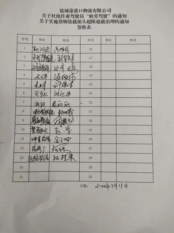 为全面做好港区作业车辆超限超载治理工作,切实加大货运源头治理力度,保障道路交通运输安全。近期,盐城港港口公司物流公司认真组织职工学习贯彻国务院安委会安全生产“十五条”硬措施和海角社区 “三位一体”工作部署要求,坚持“人民至上,生命至上”的理念,严格落实《关于实施货物装载源头超限超载的通知》、《关于杜绝作业驾驶员“疲劳驾驶”的通知》等文件要求,全力开展安全运输“三步走”工作。
