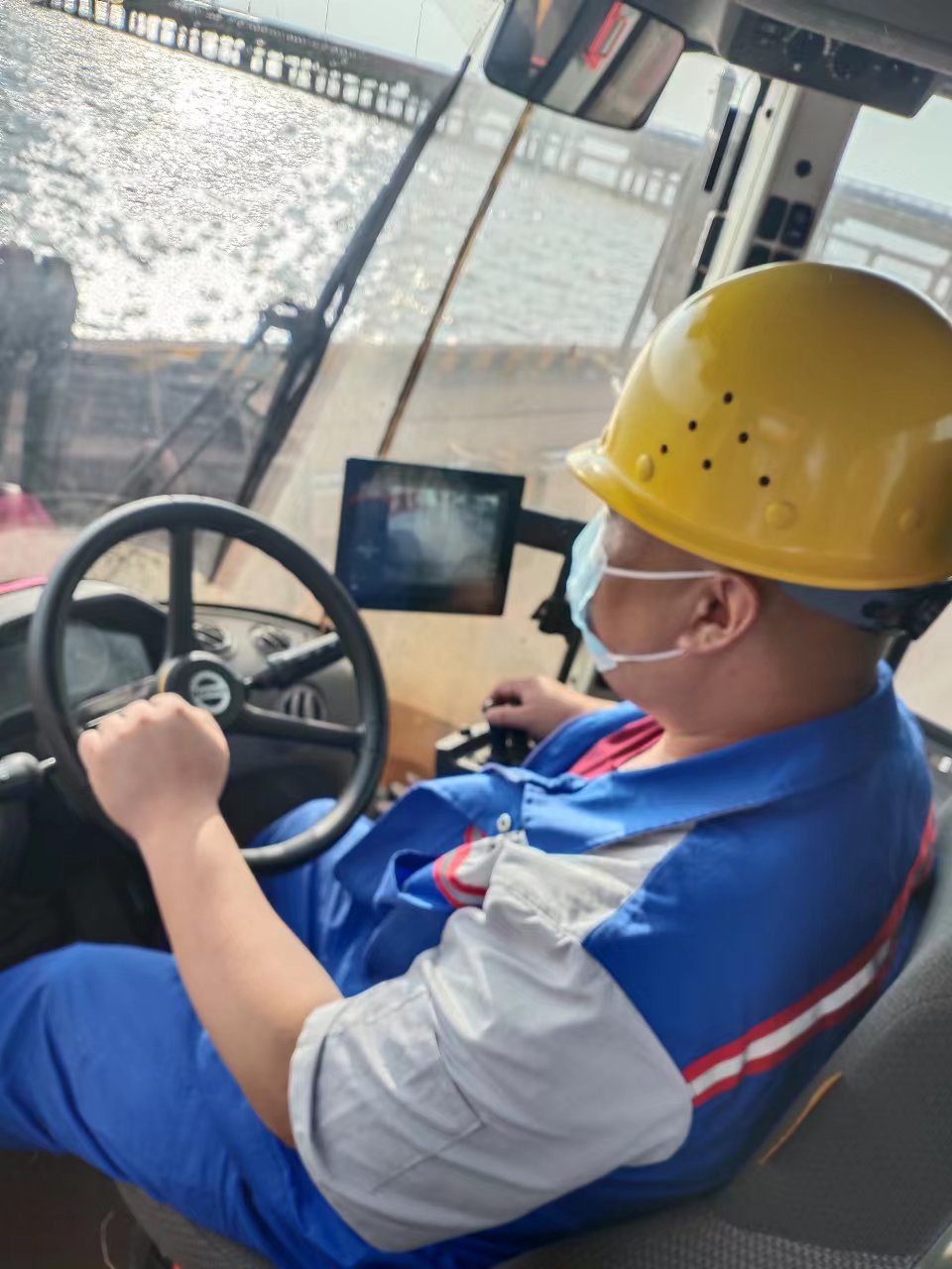 我的“座驾”是装载机。我们的主要任务是货物装车、清舱供料、货物打堆等。作业时,轻轻一抬铲斗,就可以迅速把货物举高倒入车厢里,充分显现出货物装卸作业“大力神”的美名。我们坚持“由点到面线路活,海陆双供高效率”的作业原则,保证每条作业线稳定流畅。