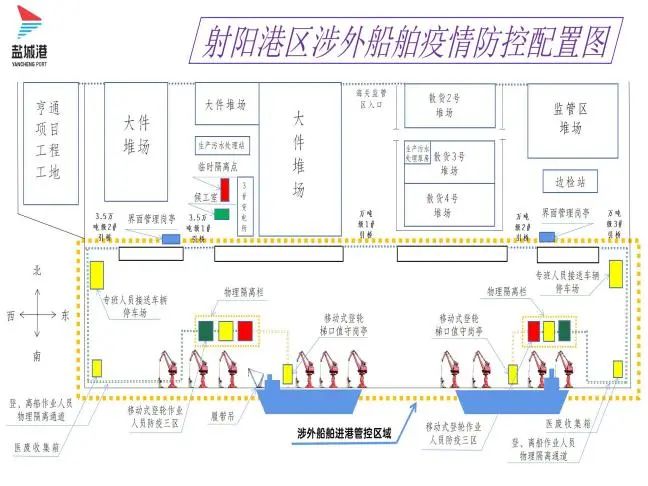 今年以来,射阳港区全面启动一类口岸开放各项准备工作,着力提升软、硬件环境,为港区在一类口岸开放正式获批后按照规范程序管理涉外船舶进离港流程、码头作业以及疫情防控等各项工作打好前站、做好准备。